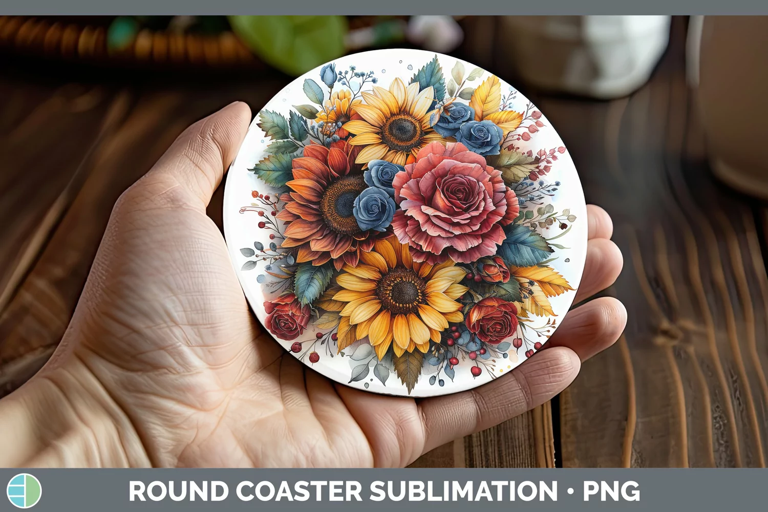 Sunflower Boho Boho Florals Round Coaster Sublimation Coaste