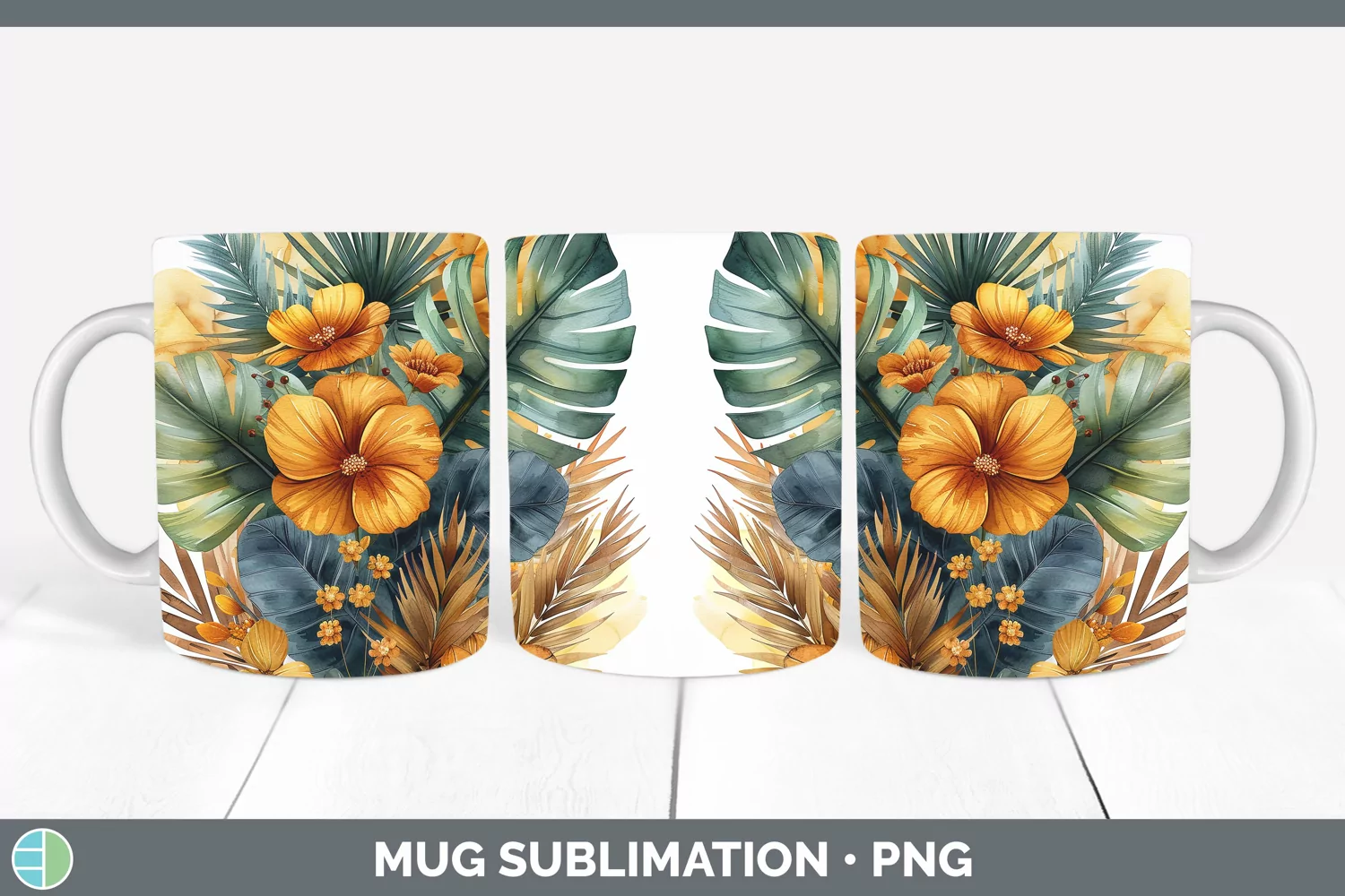 Sunflower Boho Monstera Mug Wrap Sublimation Coffee Cup Desi