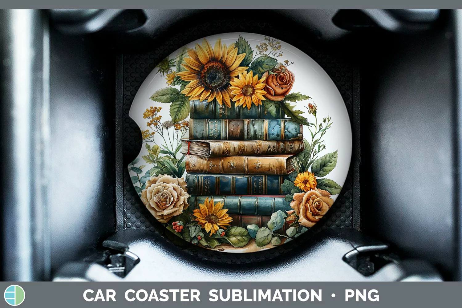 Sunflower Boho Book Stack Car Coaster Sublimation Coaster De