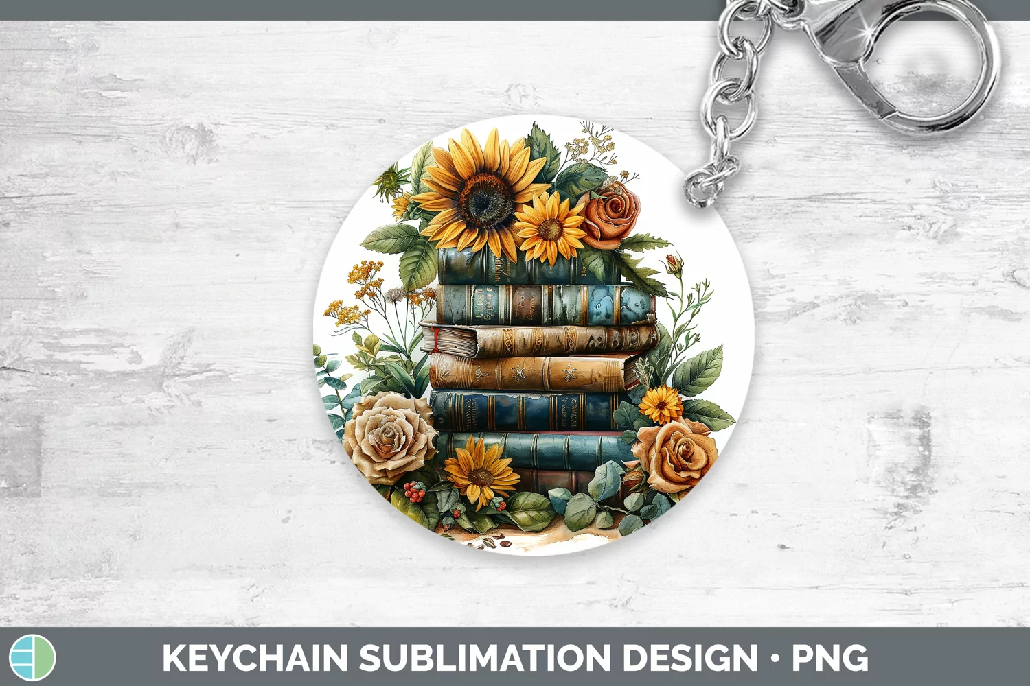 Sunflower Boho Book Stack Keychain Sublimation Keyring Desig