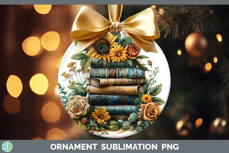 Sunflower Boho Book Stack Ornament Sublimation Bauble Design
