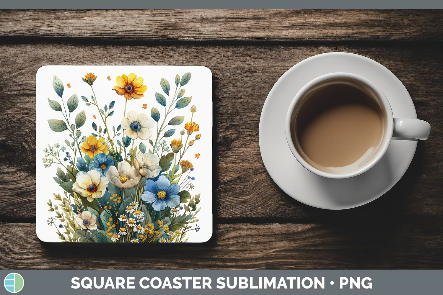 Sunflower Boho Wild Flowers Square Coaster Sublimation Coast