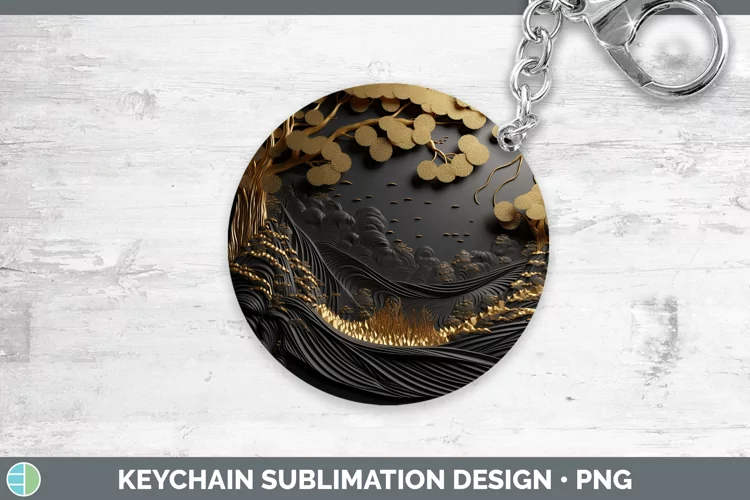 Similar Design Products to 3D Black and Gold Landscape Keychain Sublimation Keyring Des