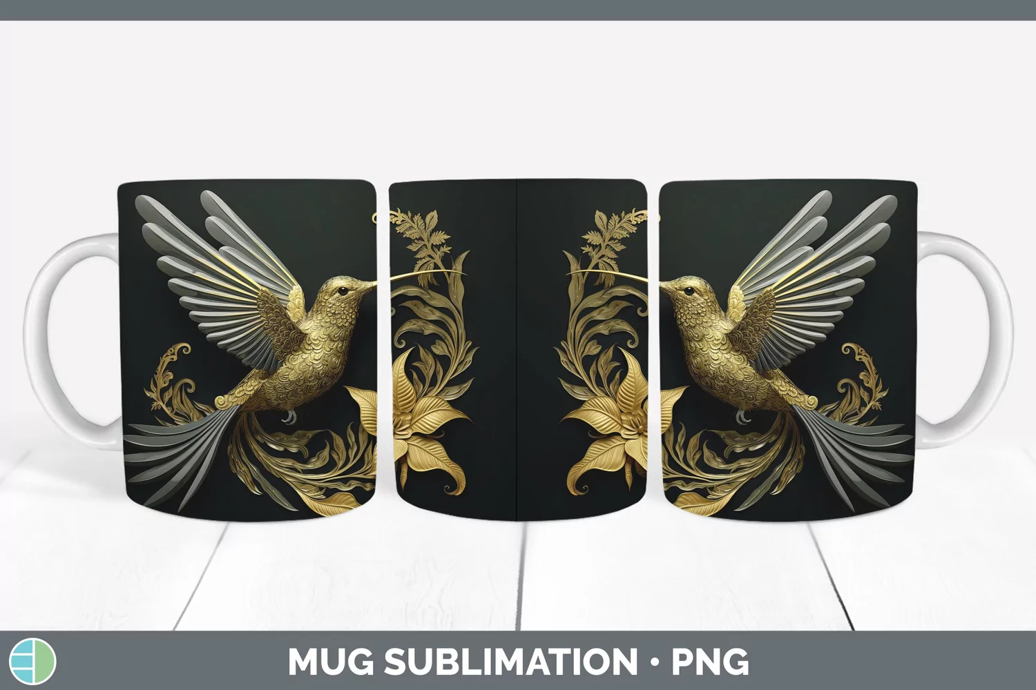 3D Black and Gold Hummingbird Mug Wrap Sublimation Coffee Cu