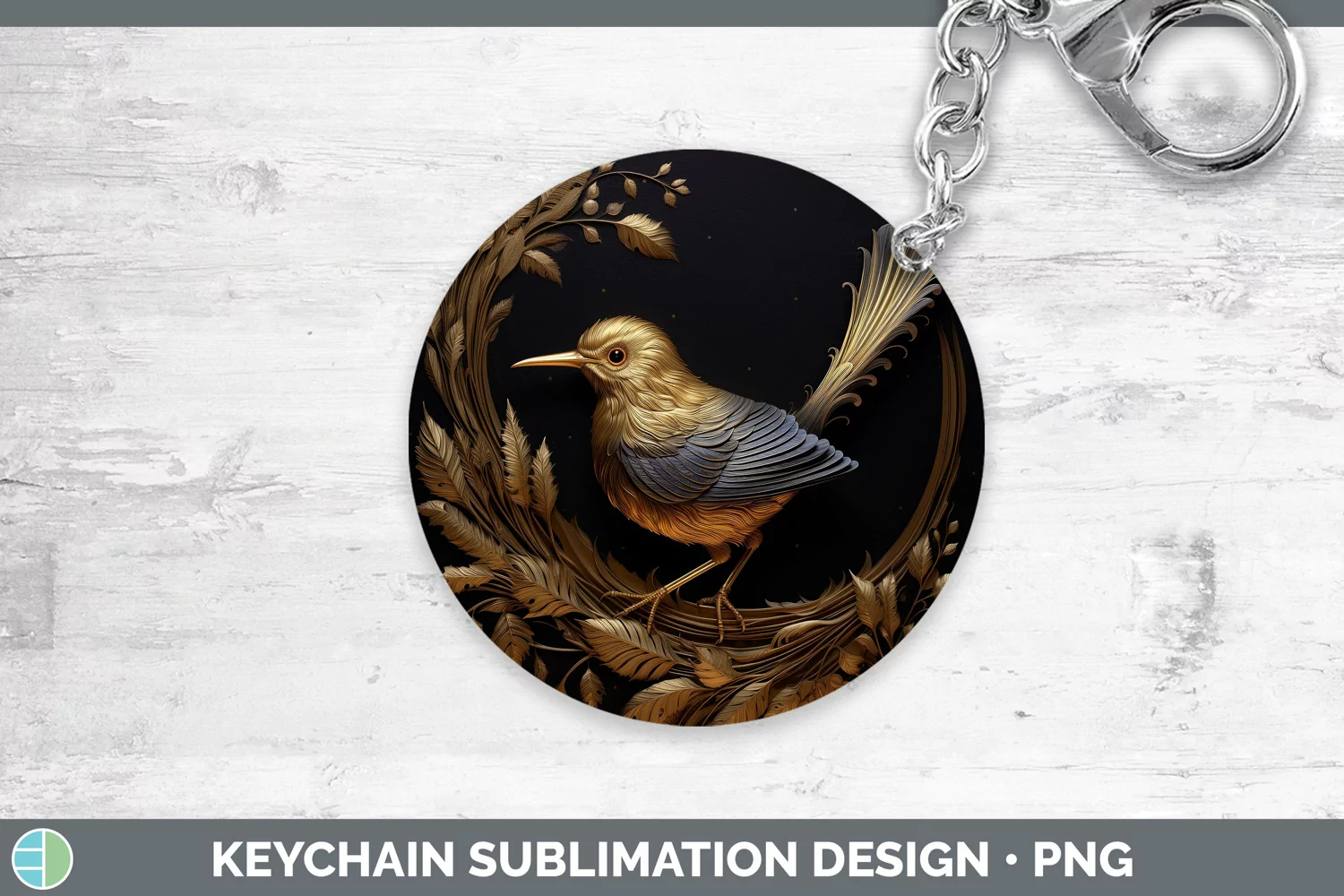 Similar Design Products to 3D Black and Gold Wren Keychain Sublimation Keyring Designs