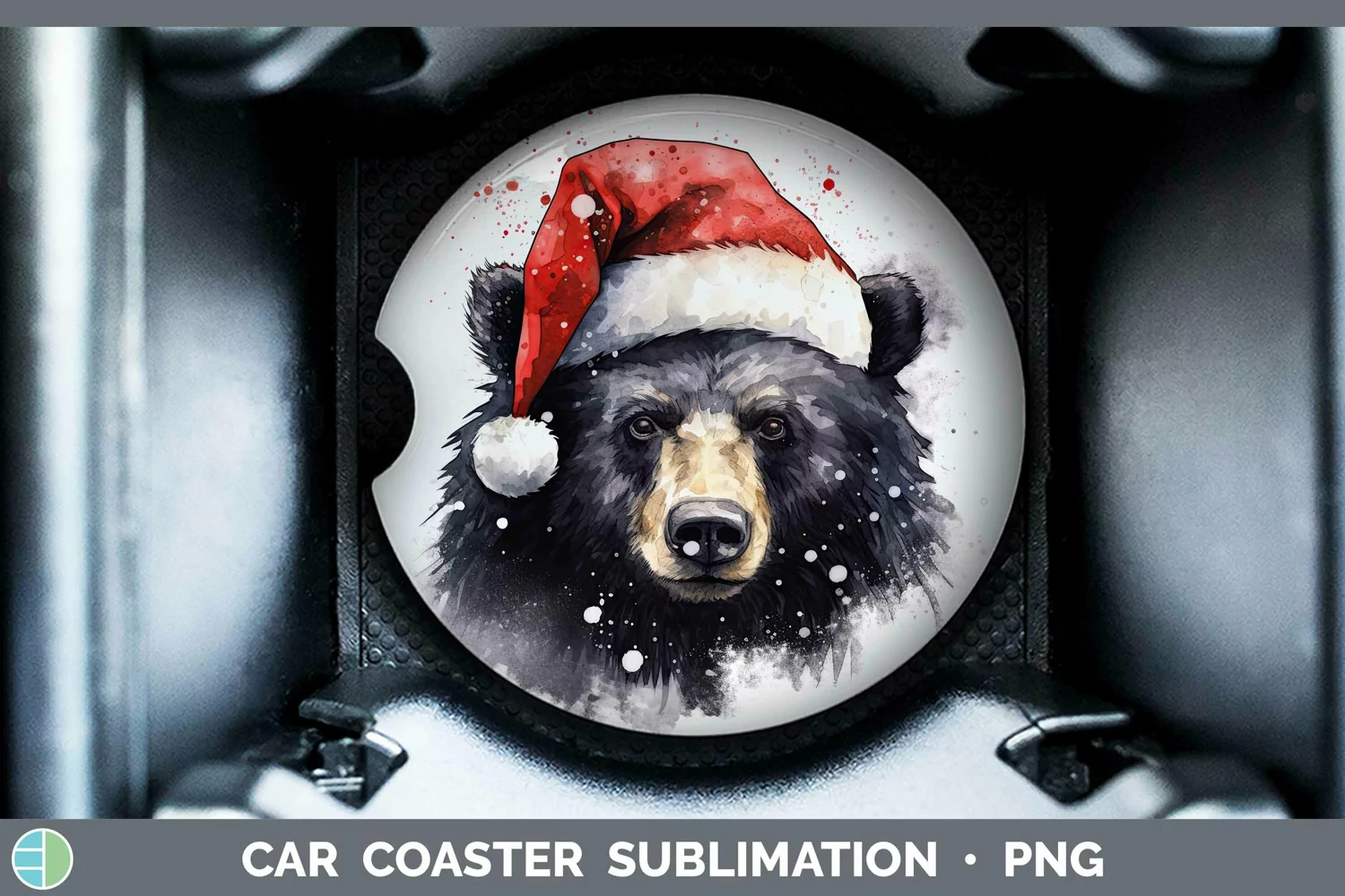 Santa Hat Black Bear Car Coaster Sublimation Coaster Designs