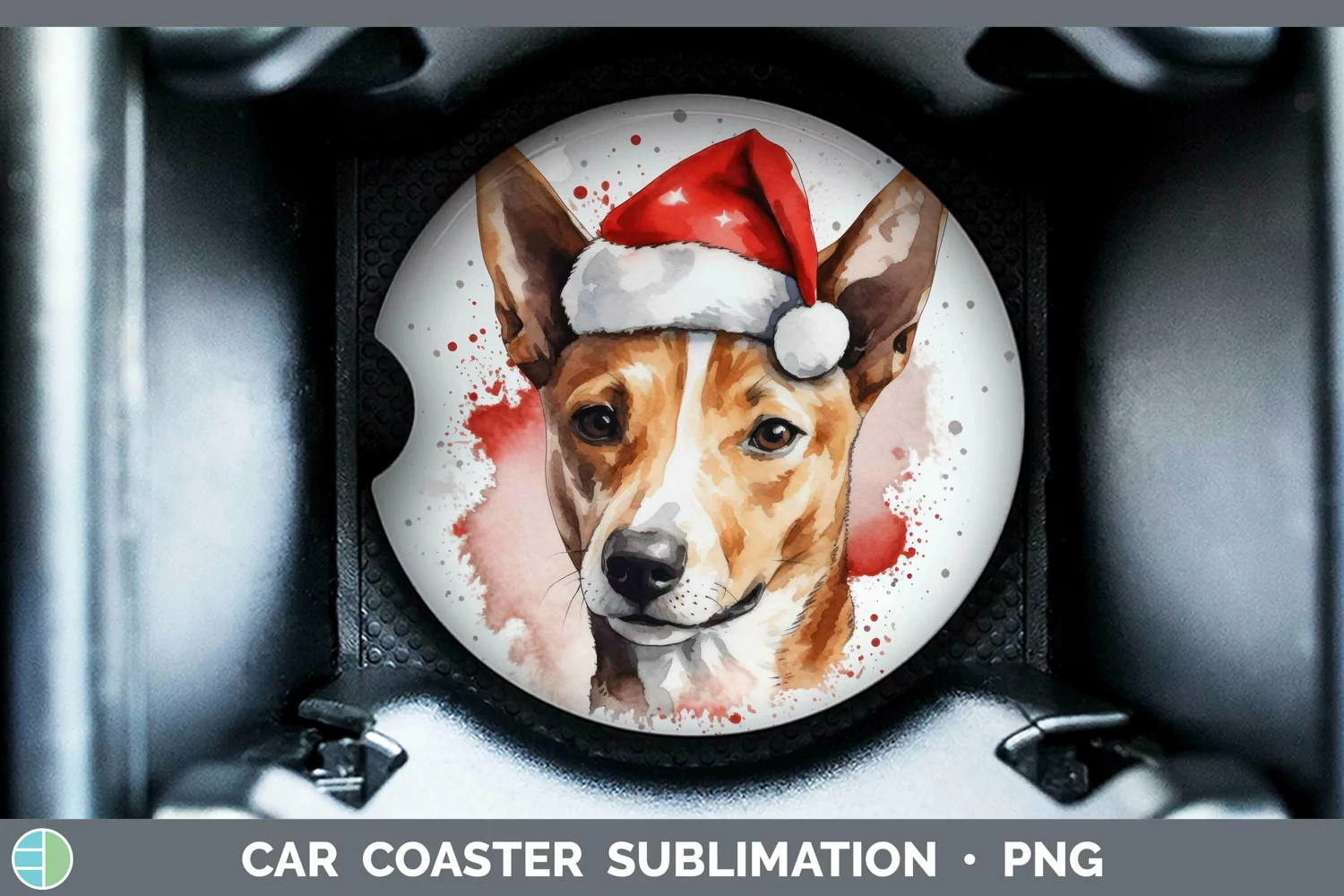 Santa Hat Basenji Car Coaster Sublimation Coaster Designs