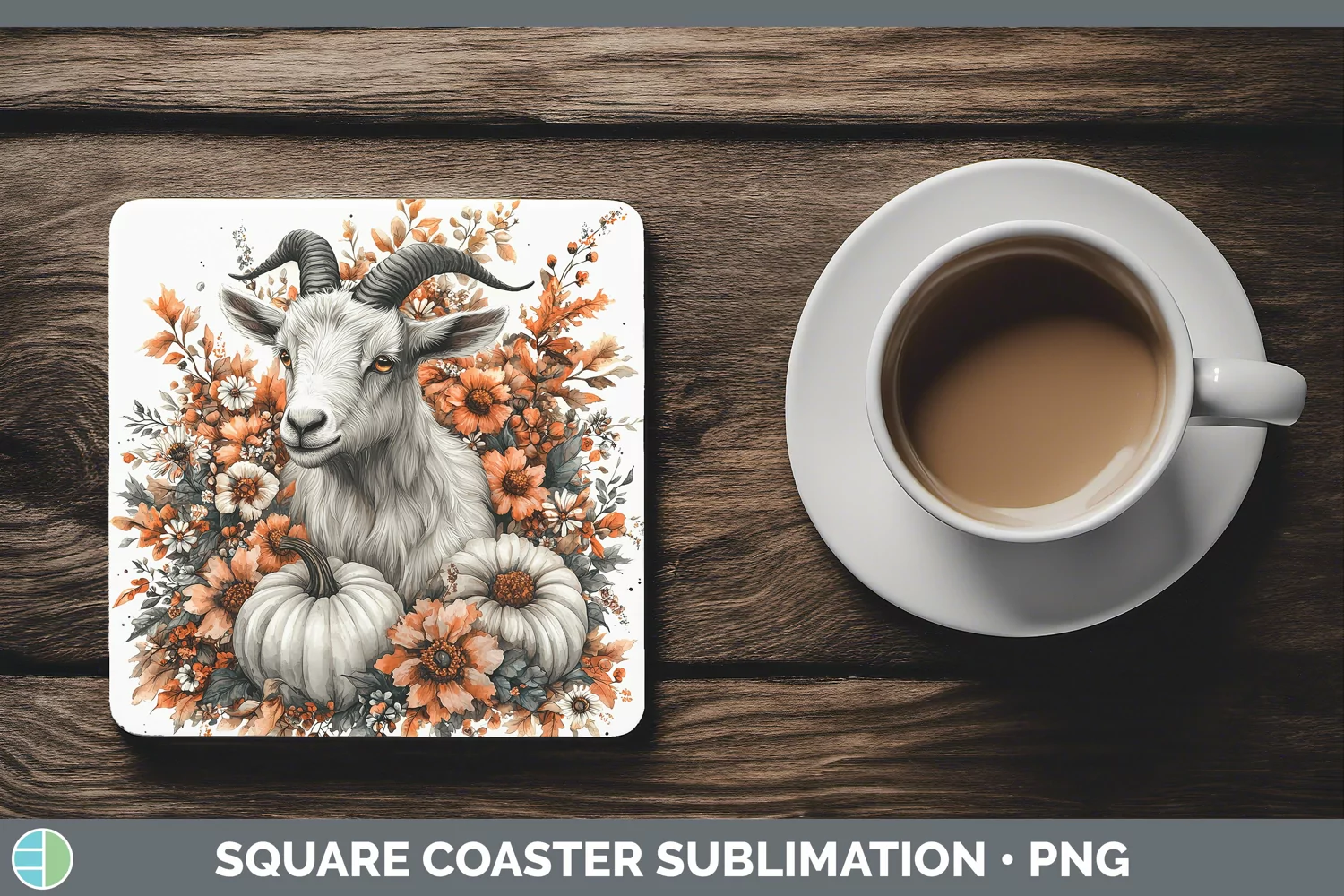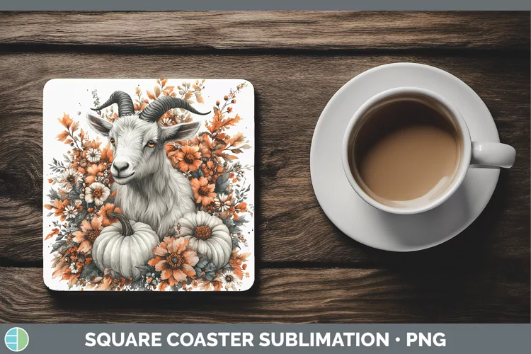 Country Pumpkin Goat Square Coaster Sublimation Coaster Desi