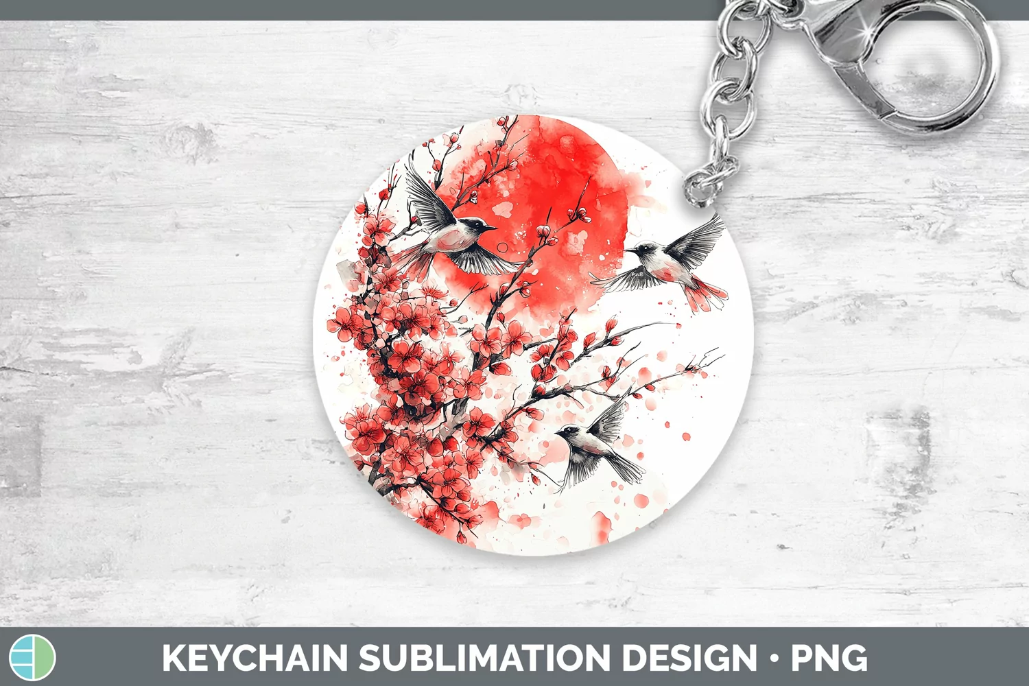 Sakura Birds Keychain Sublimation Keyring Designs