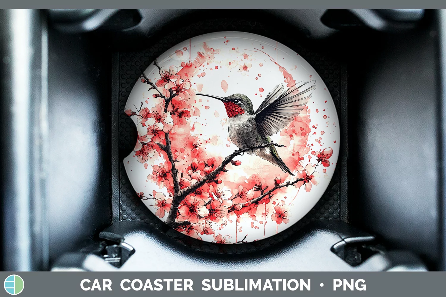 Sakura Hummingbird Car Coaster Sublimation Coaster Designs