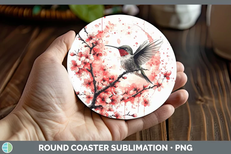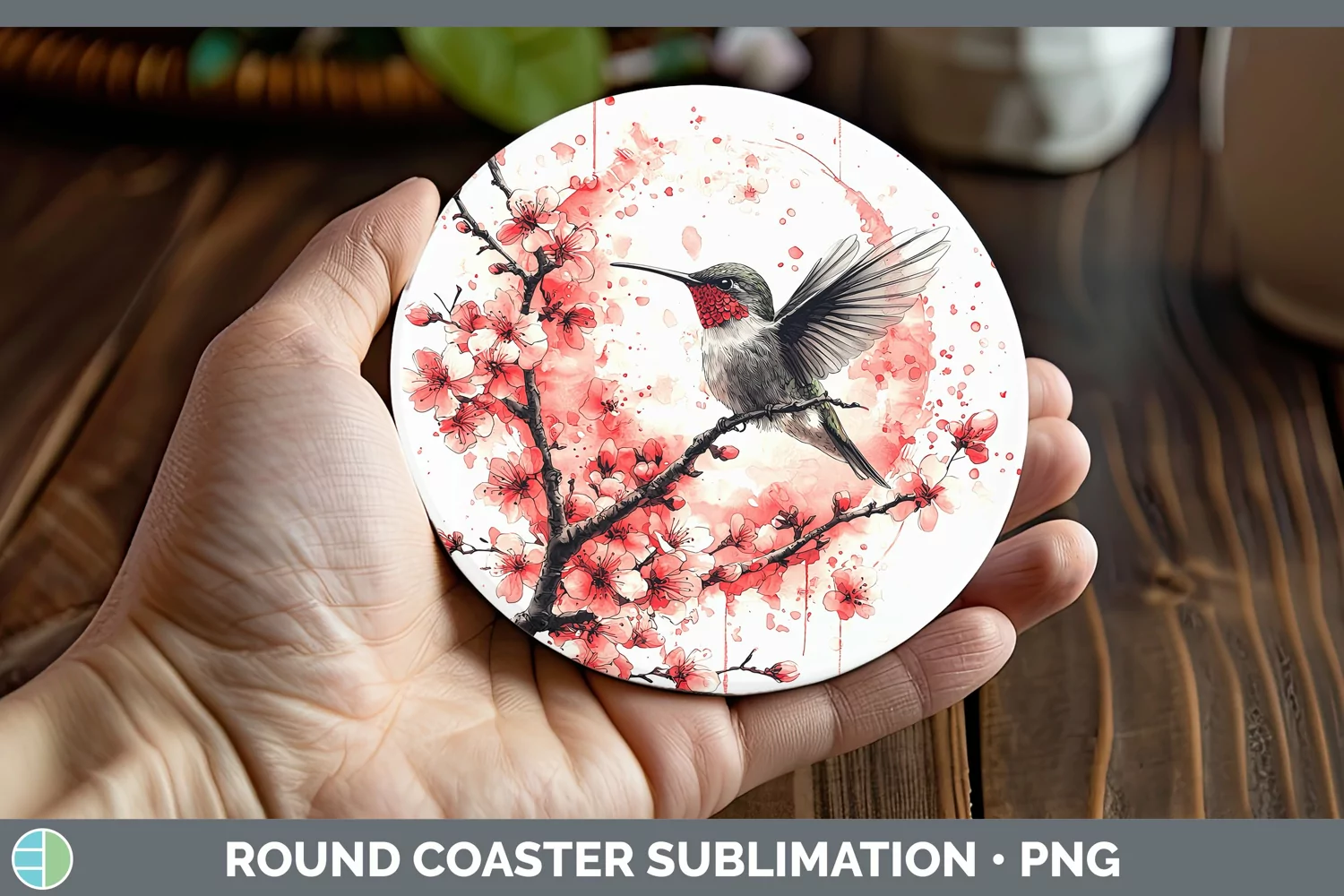 Sakura Hummingbird Round Coaster Sublimation Coaster Designs