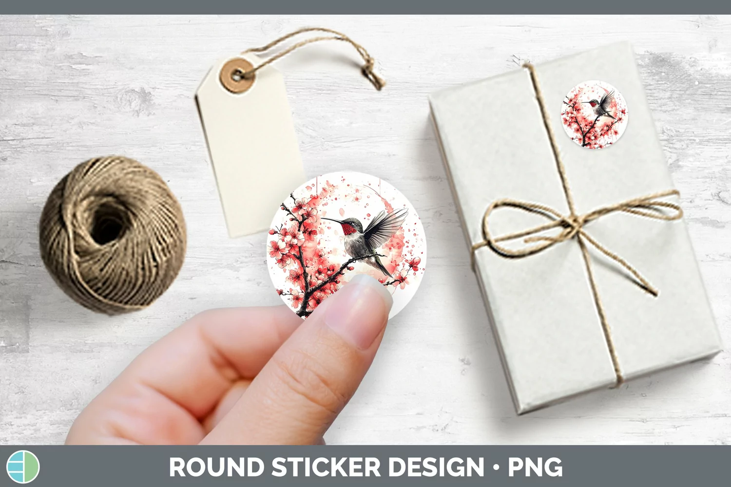Similar Design Products to Sakura Hummingbird Stickers | Round Labels Designs
