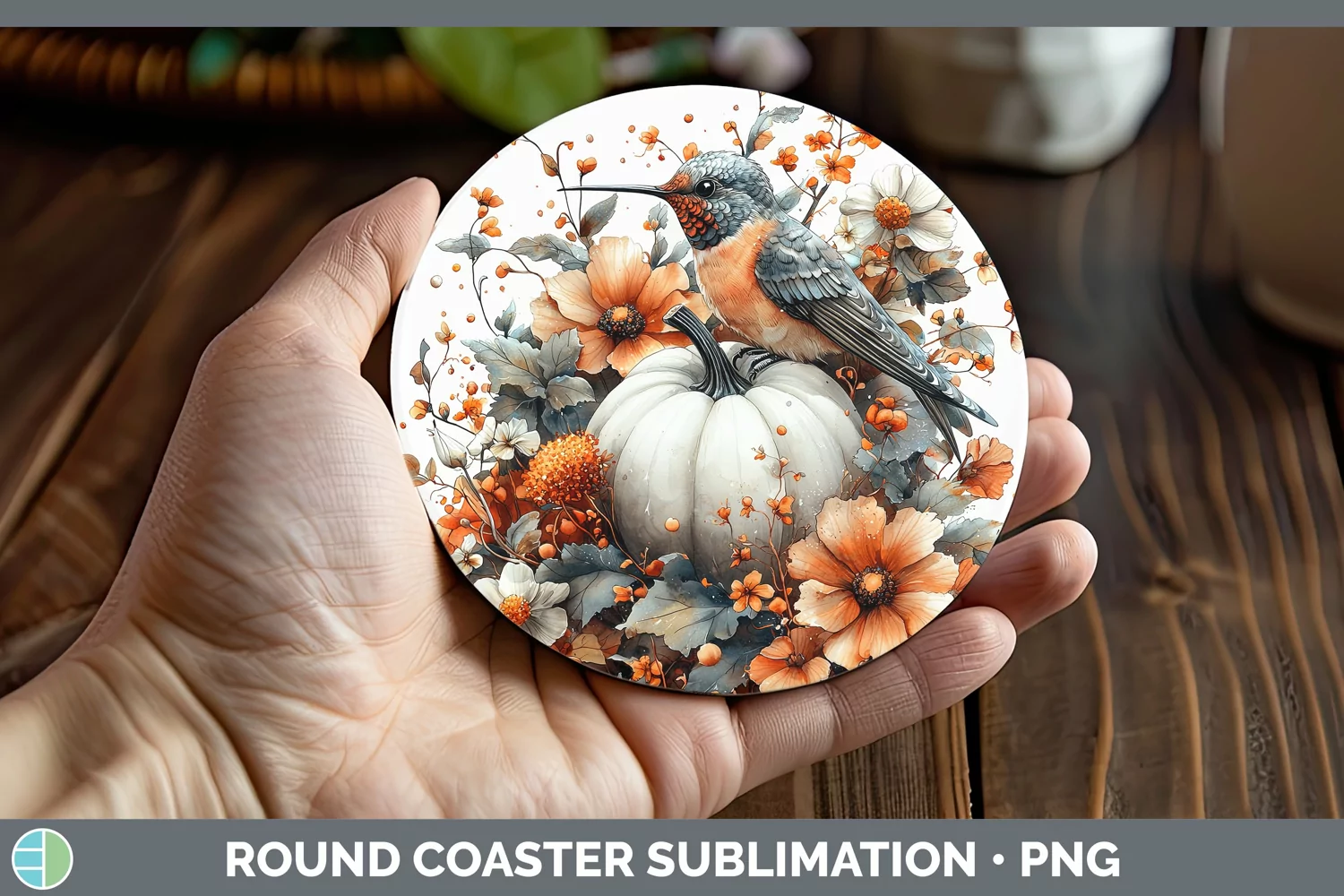 Country Pumpkin Hummingbird Round Coaster Sublimation Coaste