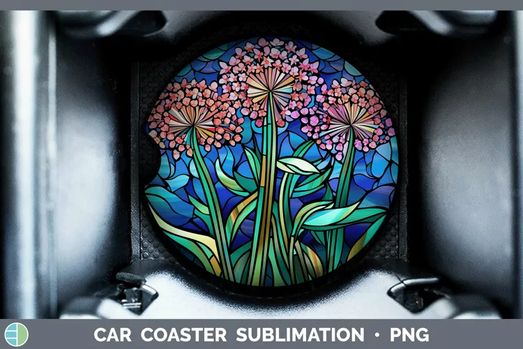 Stained Glass Allium Car Coaster Sublimation Coaster Designs