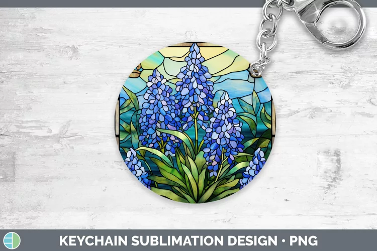Stained Glass Bluebonnet Keychain Sublimation Keyring Design