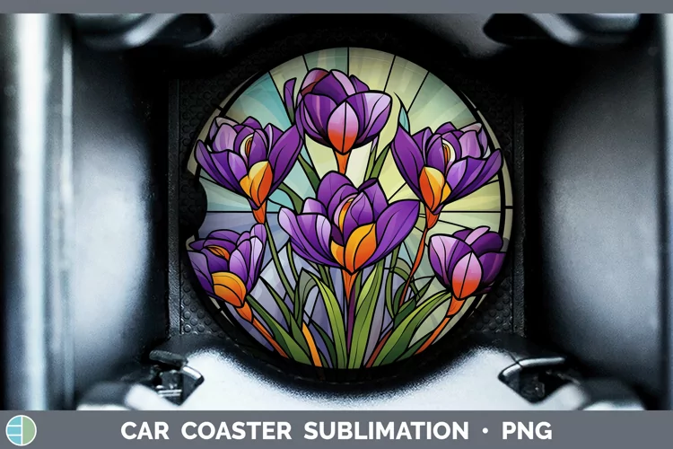 Stained Glass Crocus Car Coaster Sublimation Coaster Designs