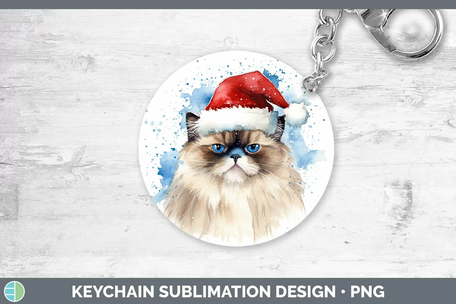 Santa Hat Himalayan Cat Keychain Sublimation Keyring Designs