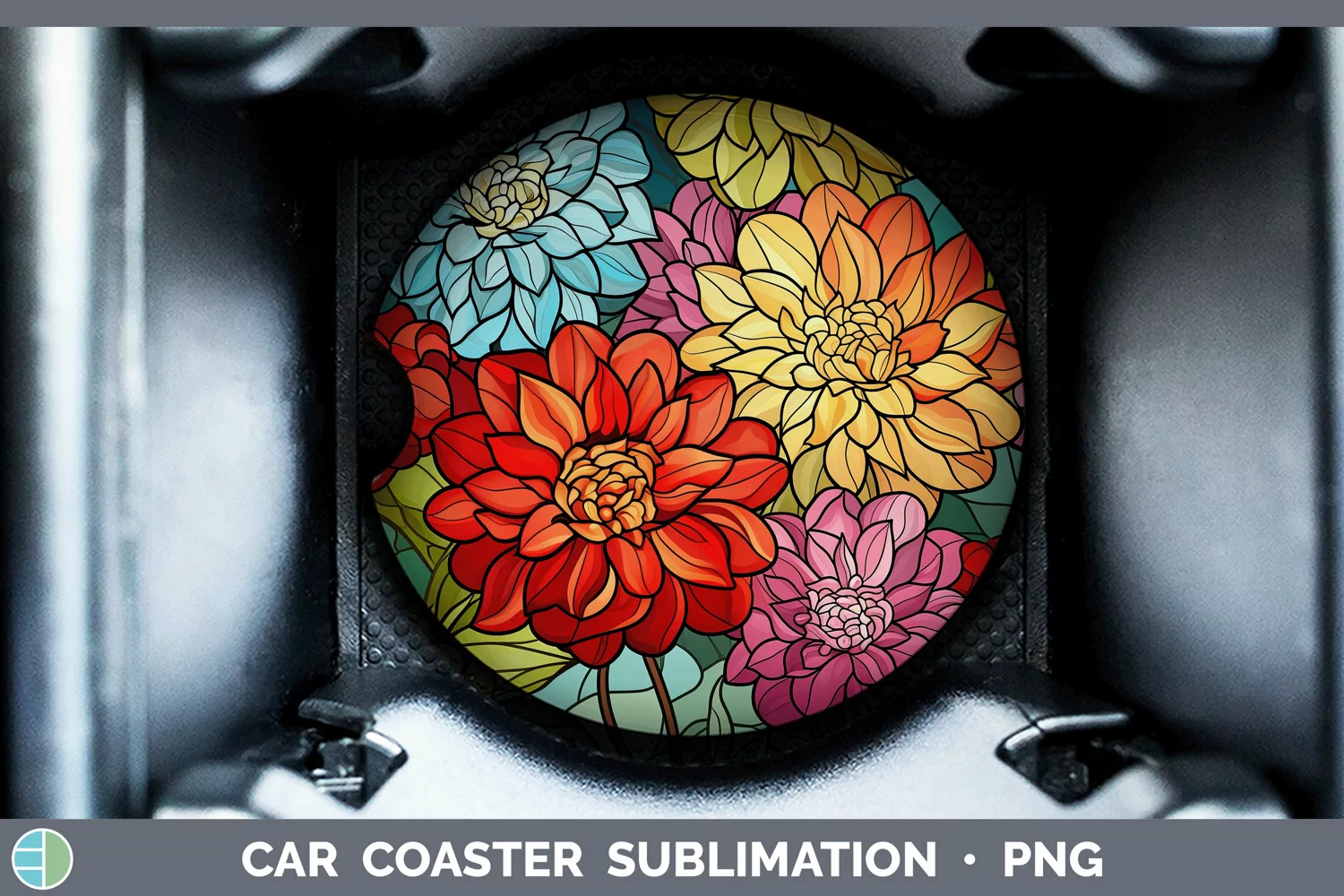 Stained Glass Zinnia Car Coaster Sublimation Coaster Designs