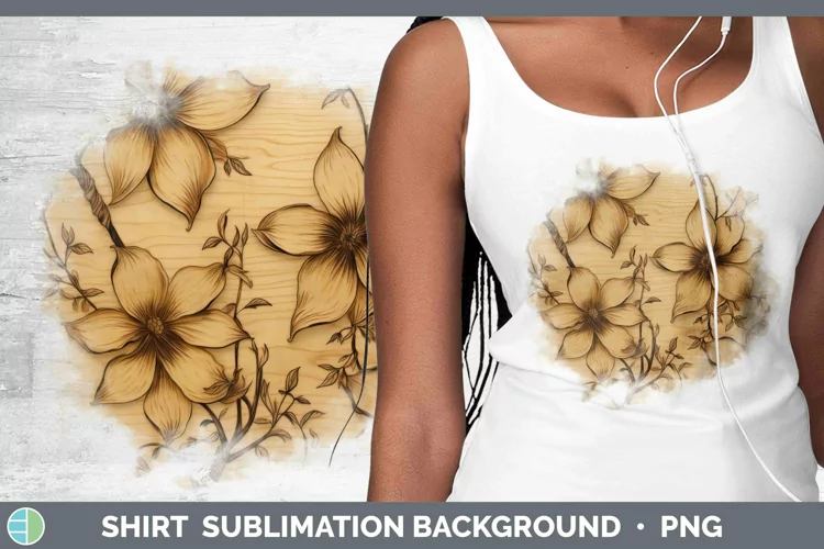 Wood Burned Flowers Clematis Shirt Sublimation Sublimation B