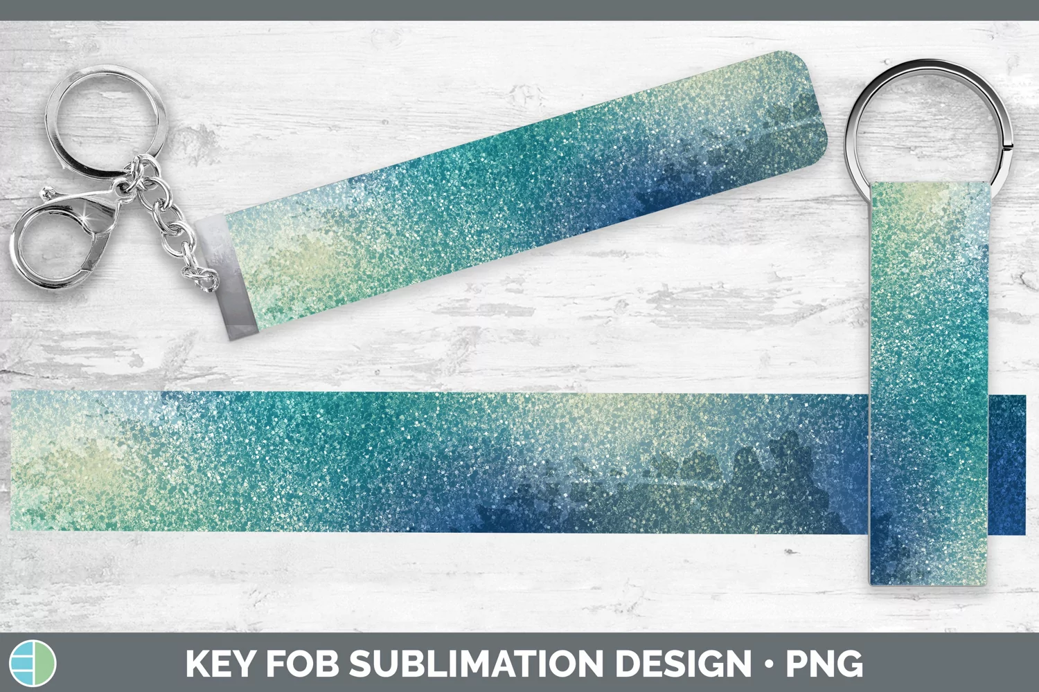 Glitter Teal Forest Silhouette Key Fob Sublimation Wristlet