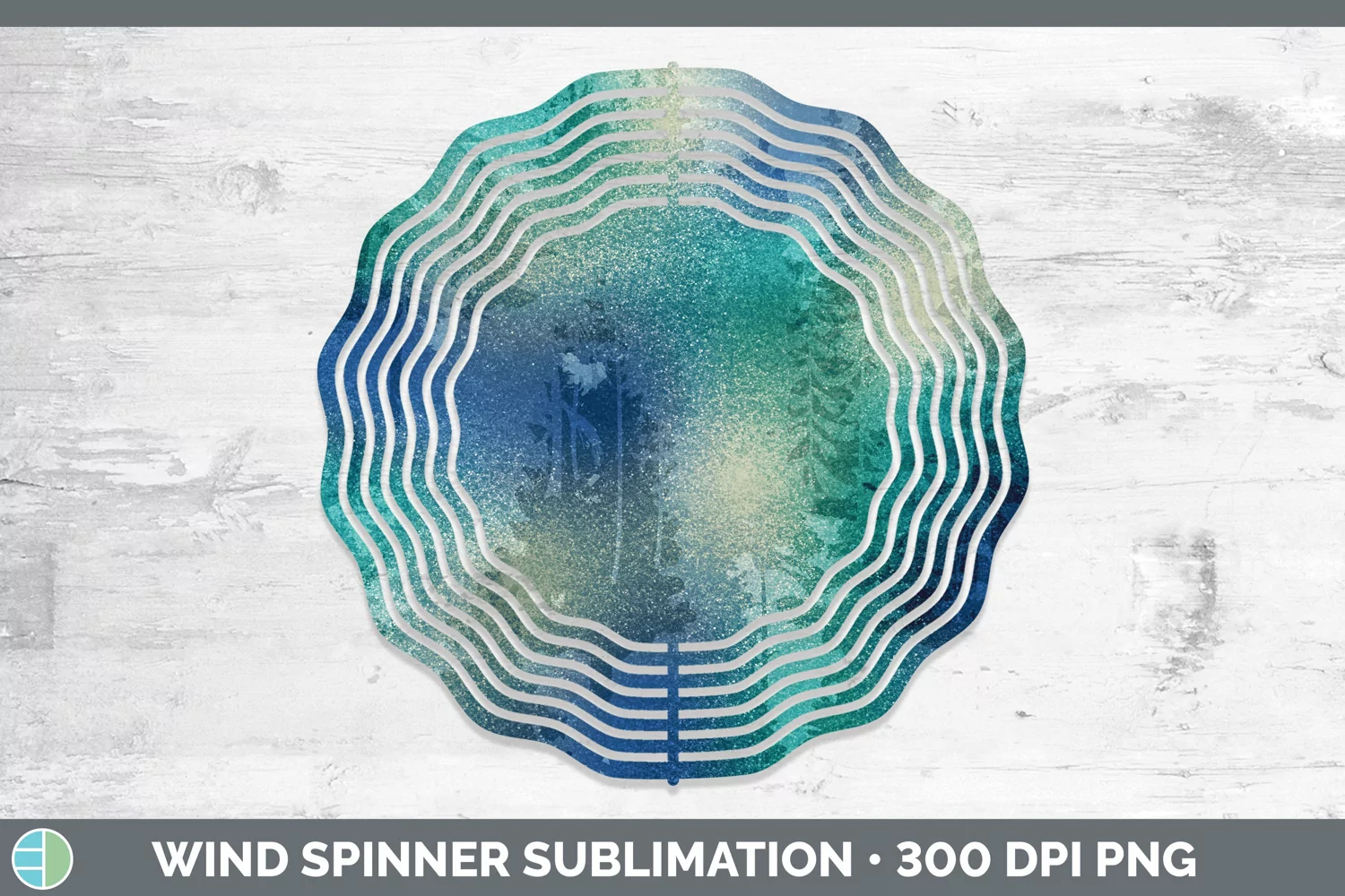 Glitter Teal Forest Silhouette Wind Spinner Sublimation Spin