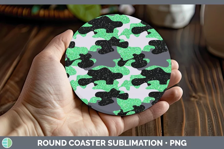 Glitter Green Camo Round Coaster Sublimation Coaster Designs