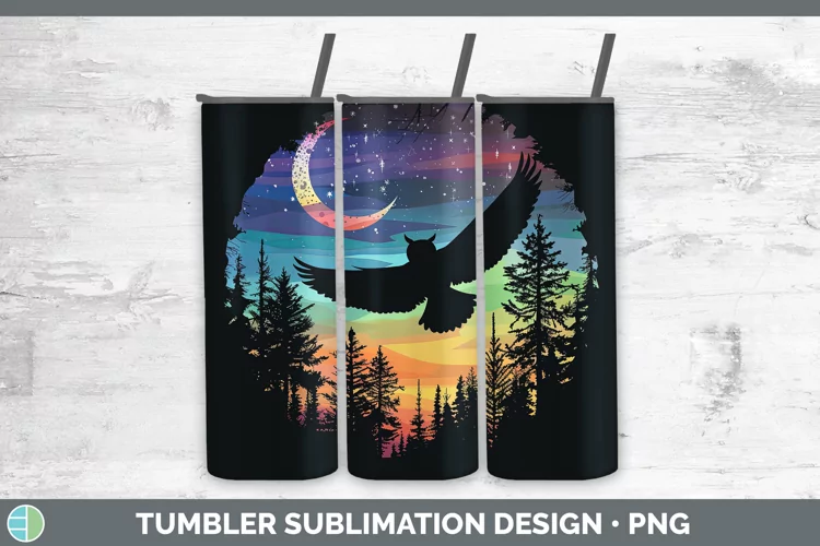 Northern Lights Owl Tumbler Sublimation 20 oz Skinny Tumbler