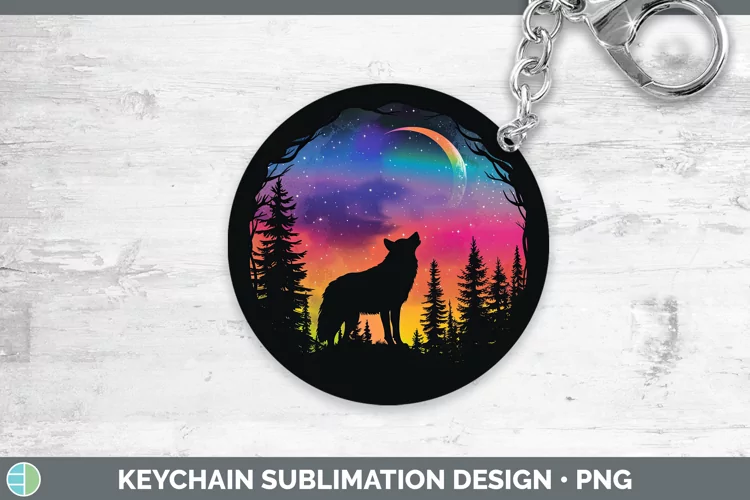 Northern Lights Wolf Keychain Sublimation Keyring Designs