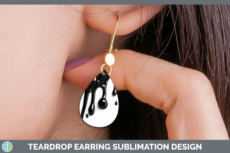 3D Black Slime Teardrop Earrings Sublimation Earrings Design