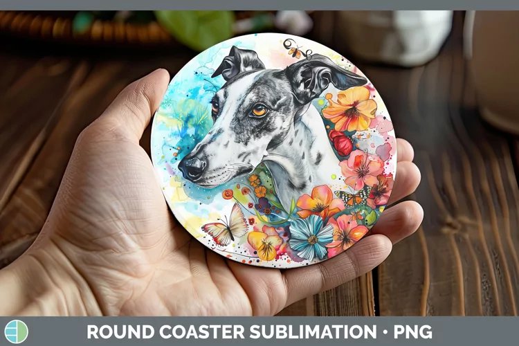 Butterfly Dog Greyhound Round Coaster Sublimation Coaster De