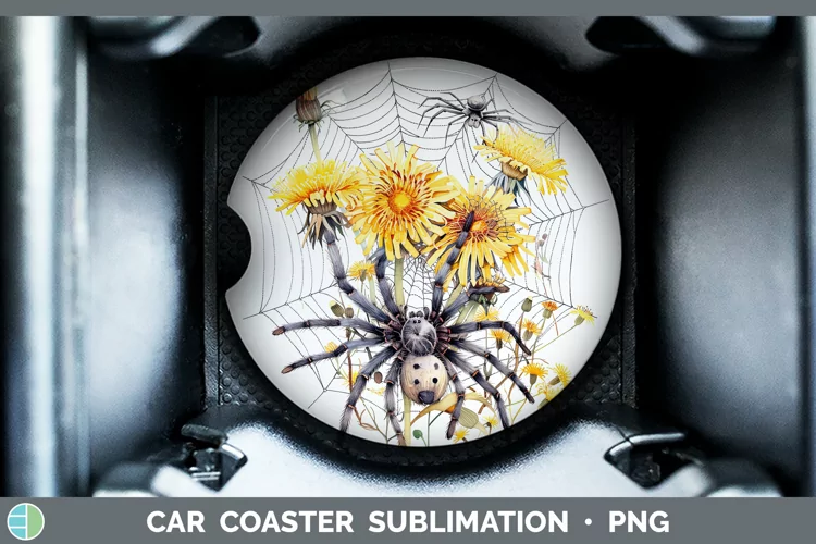 Halloween Spiderweb Flowers Dandelion Car Coaster Sublimatio
