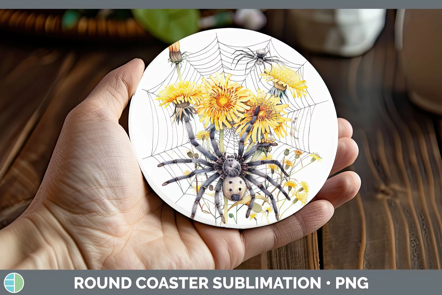 Halloween Spiderweb Flowers Dandelion Round Coaster Sublimat