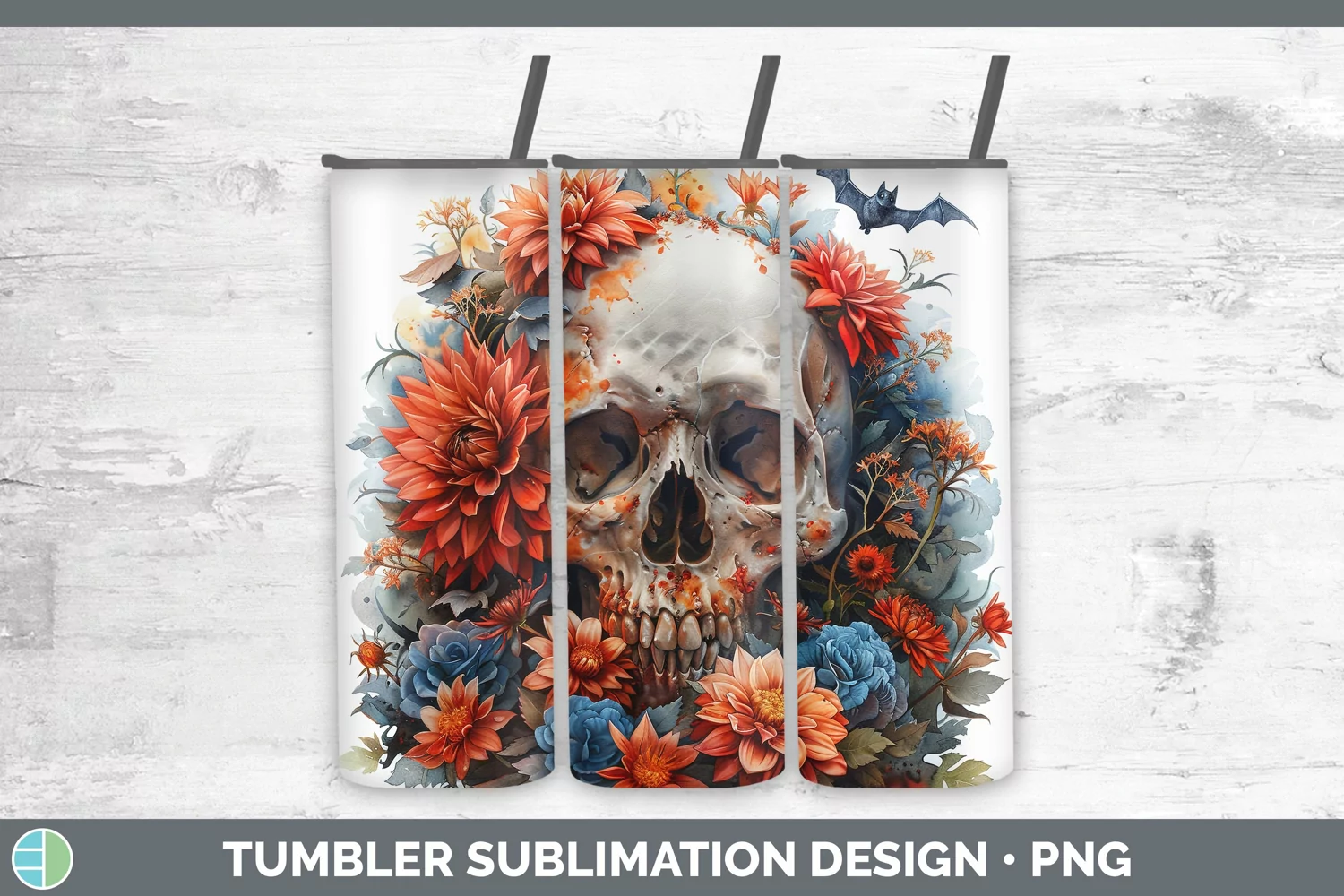 Skull Flowers 01 Dahlia Tumbler Sublimation 20 oz Skinny Tum