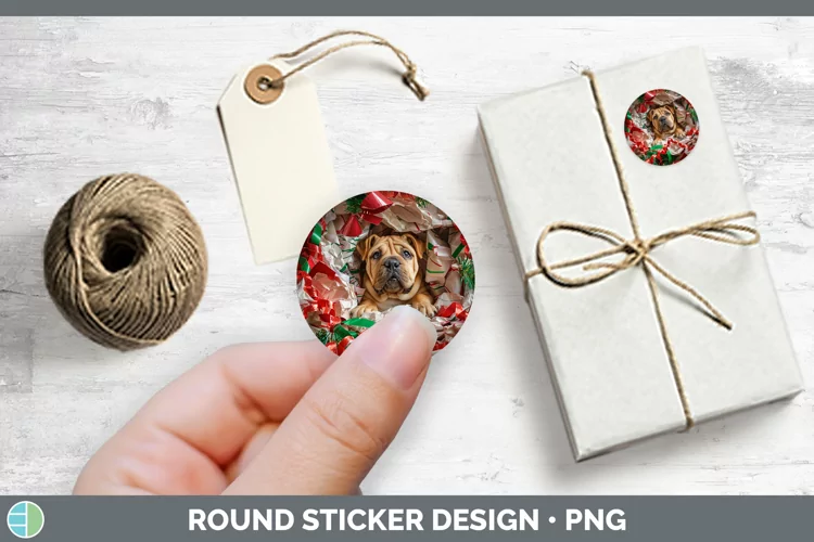 Christmas Wrapping Dogs Shar Pei Stickers | Round Labels Des