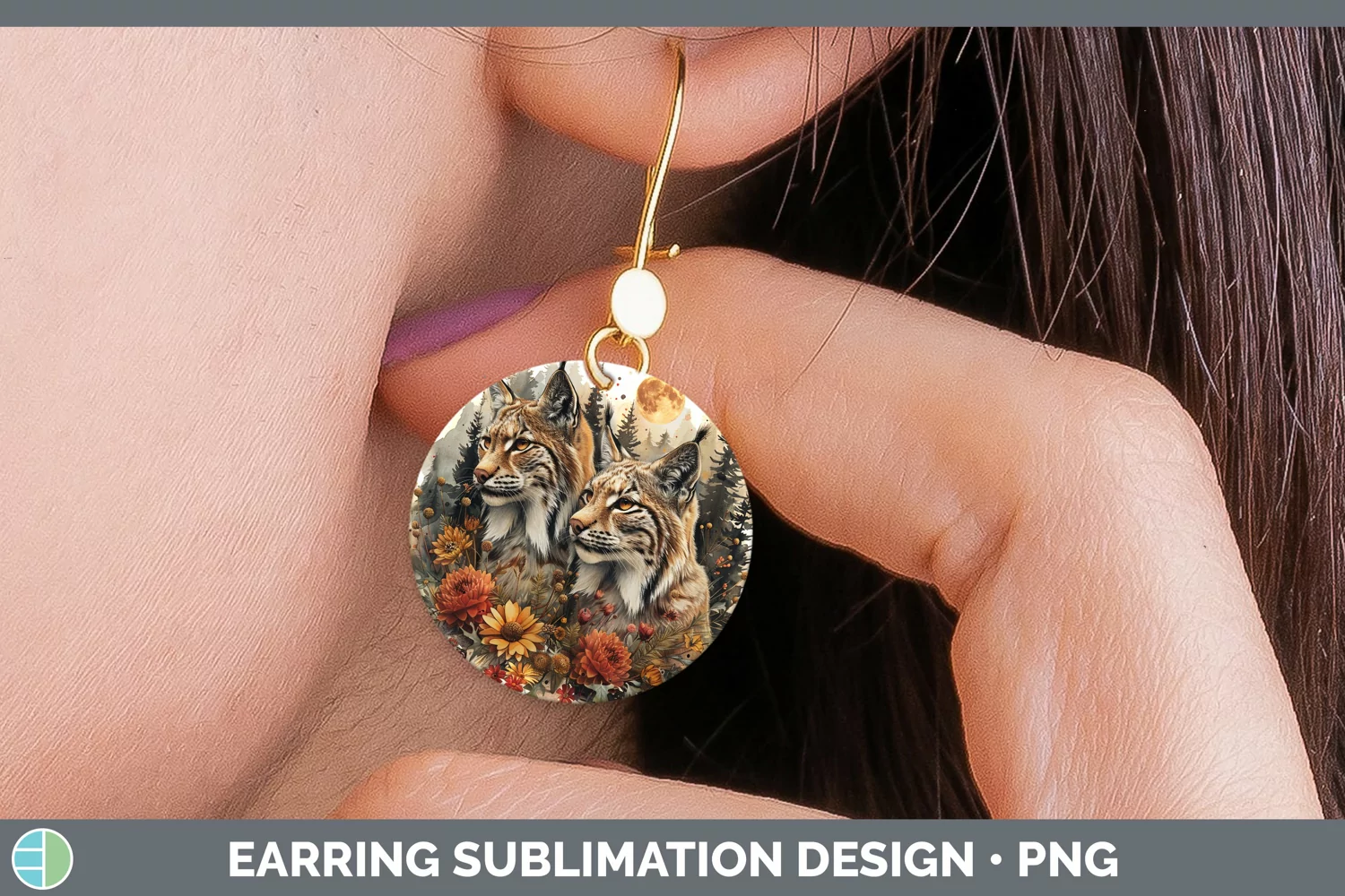 Autumn Lynx Round Earrings Sublimation Earrings Designs