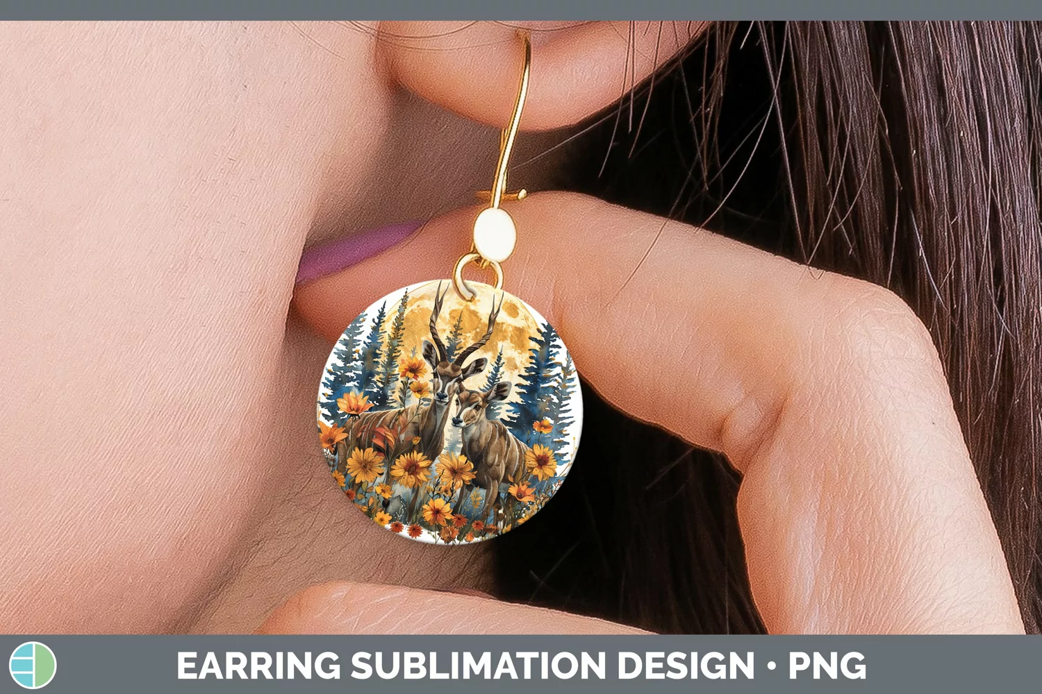 Autumn Kudu Round Earrings Sublimation Earrings Designs