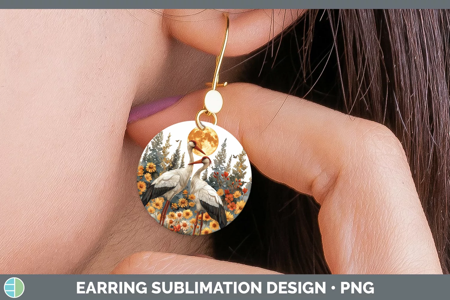 Autumn Stork Round Earrings Sublimation Earrings Designs