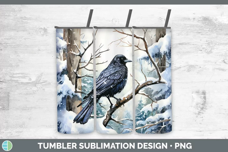 Winter Snow Crow Tumbler Sublimation 20 oz Skinny Tumbler De