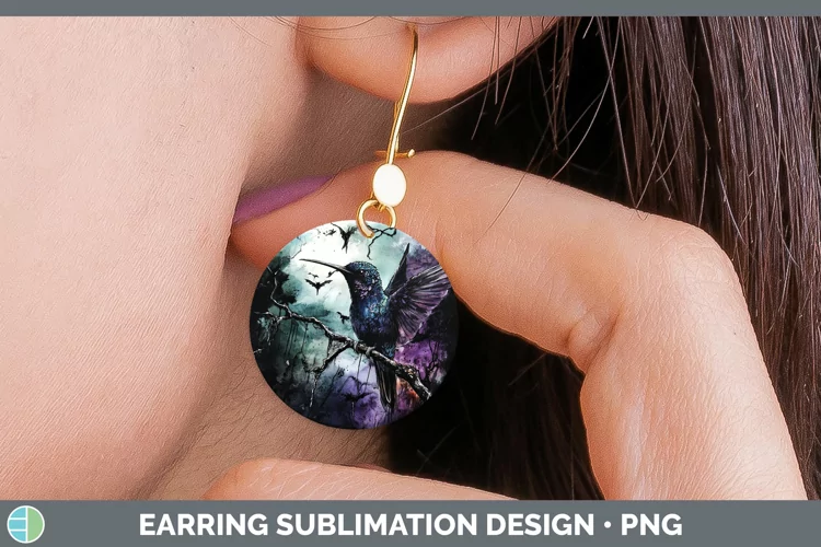Gothic Hummingbird Round Earrings Sublimation Earrings Desig