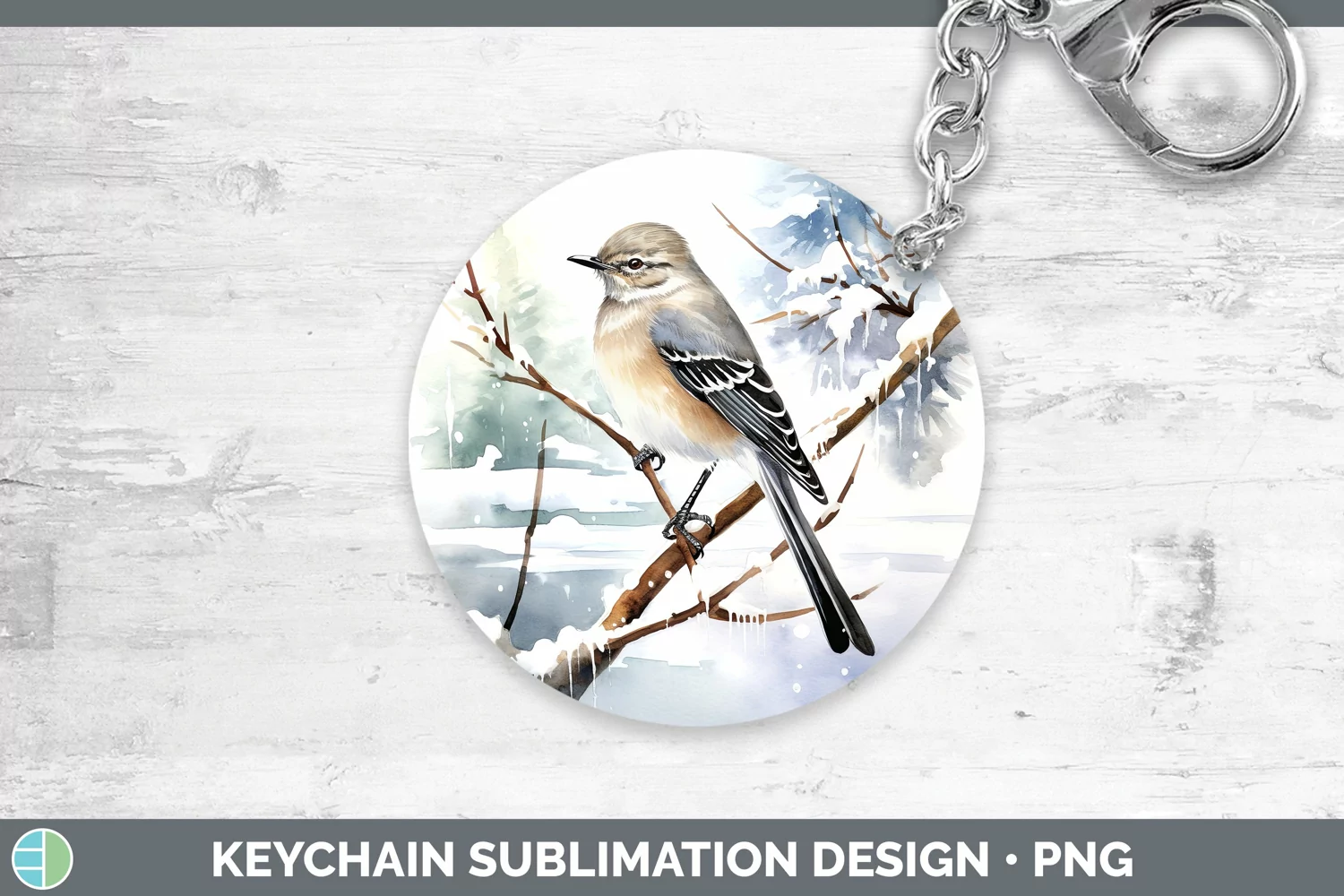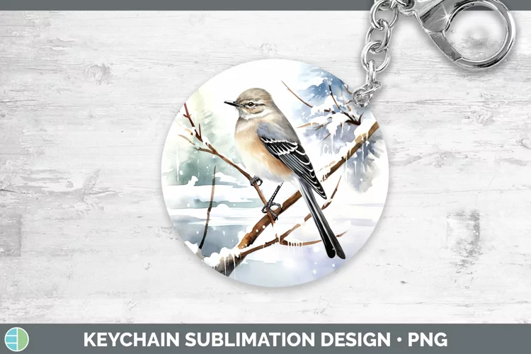 Winter Snow Mockingbird Keychain Sublimation Keyring Designs