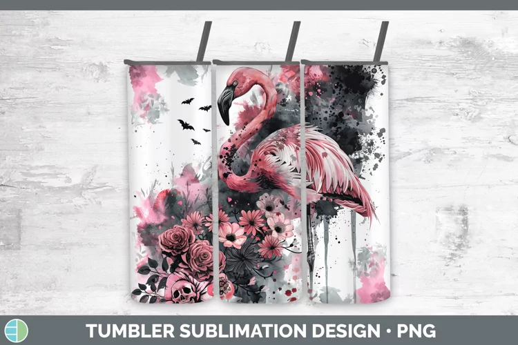 Gothic Flamingo Tumbler Sublimation 20 oz Skinny Tumbler Des