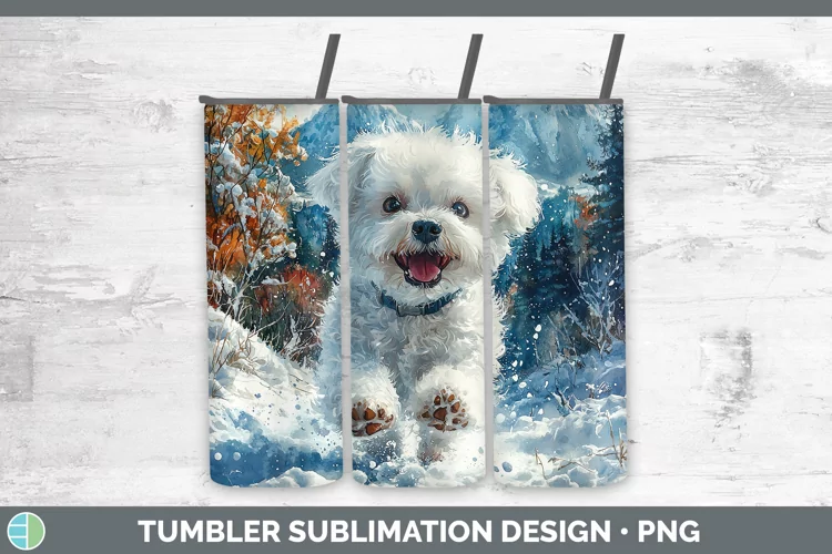 Winter Dogs Bichon Frise Tumbler Sublimation 20 oz Skinny Tu