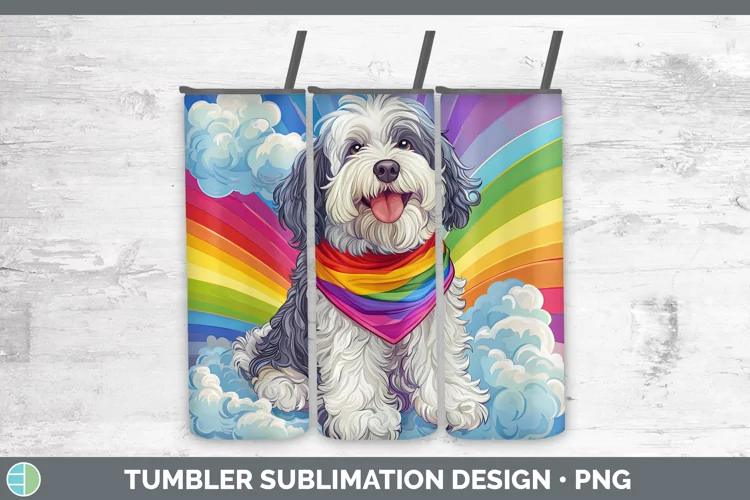 Rainbow Dogs Old English Sheepdog Tumbler Sublimation 20 oz