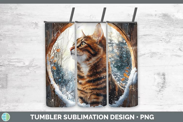 Winter Cats Bengal Cat Tumbler Sublimation 20 oz Skinny Tumb example image 1