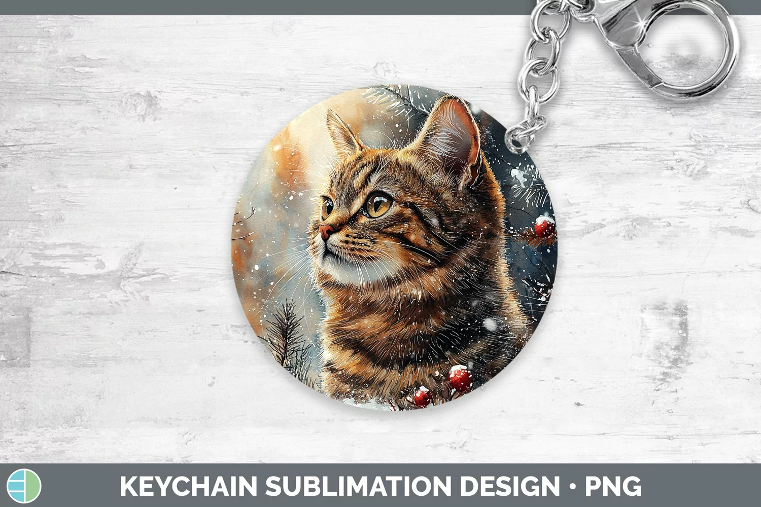 Winter Cats Tabby Cat Keychain Sublimation Keyring Designs