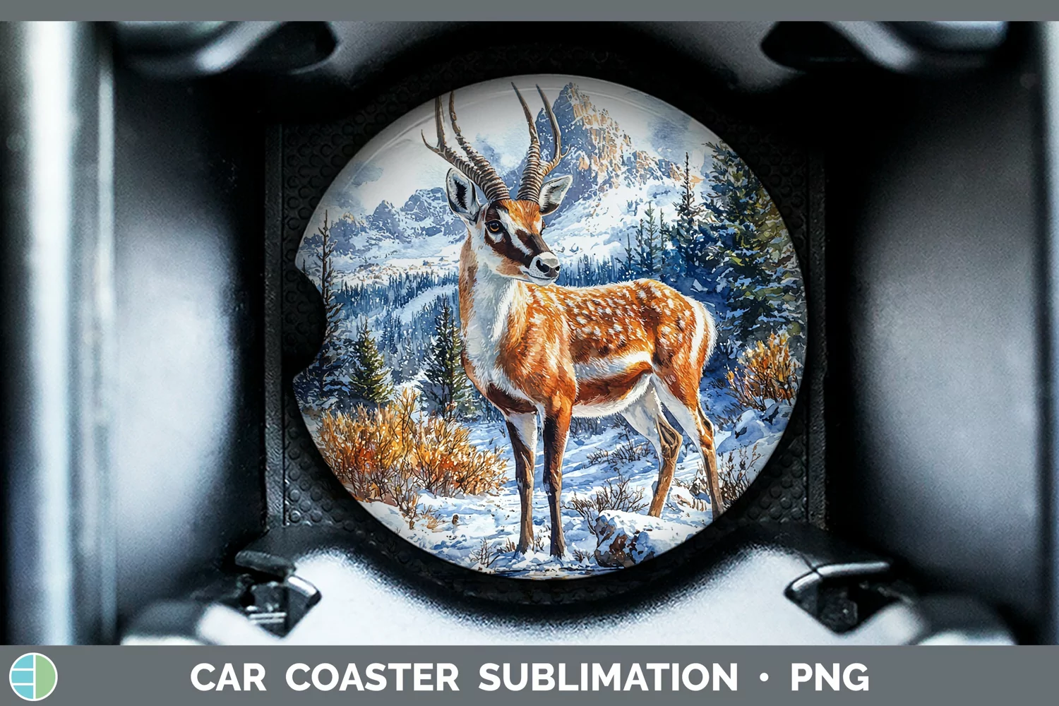 Winter Exotic Animals Antelope Car Coaster Sublimation Coast