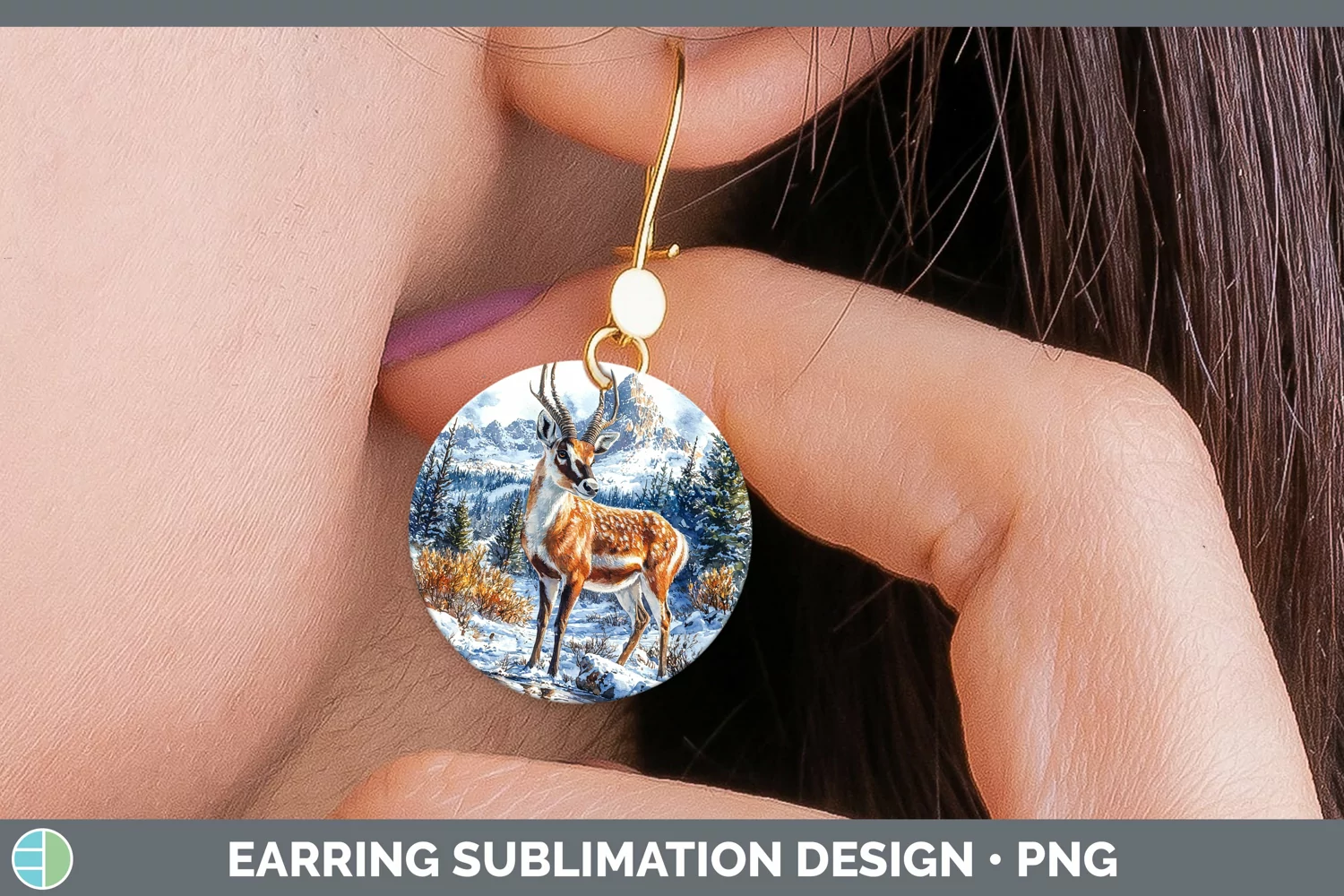 Winter Exotic Animals Antelope Round Earrings Sublimation Ea