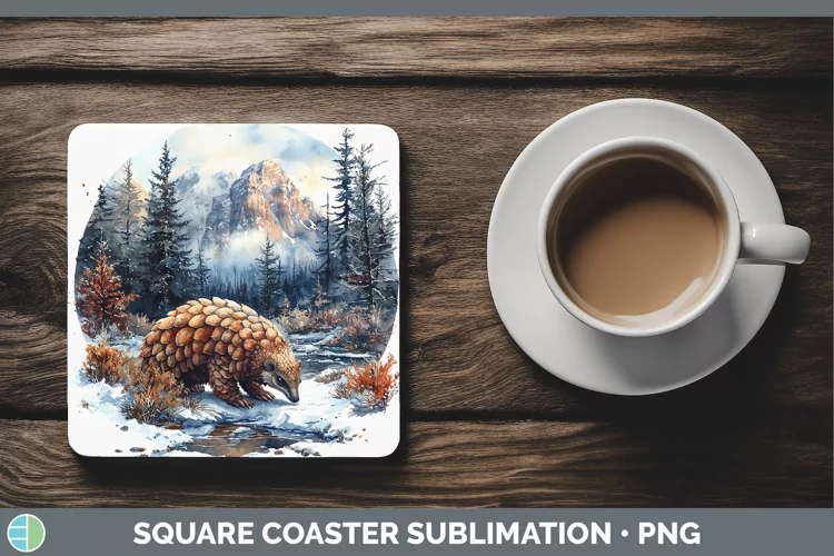 Winter Exotic Animals Pangolin Square Coaster Sublimation Co
