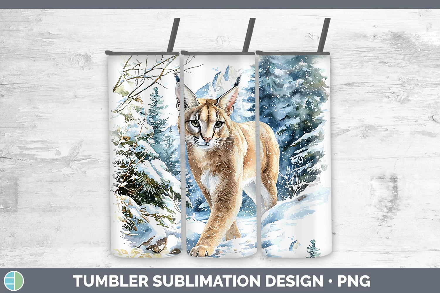 Winter Wild Cats Caracal Tumbler Sublimation 20 oz Skinny Tu