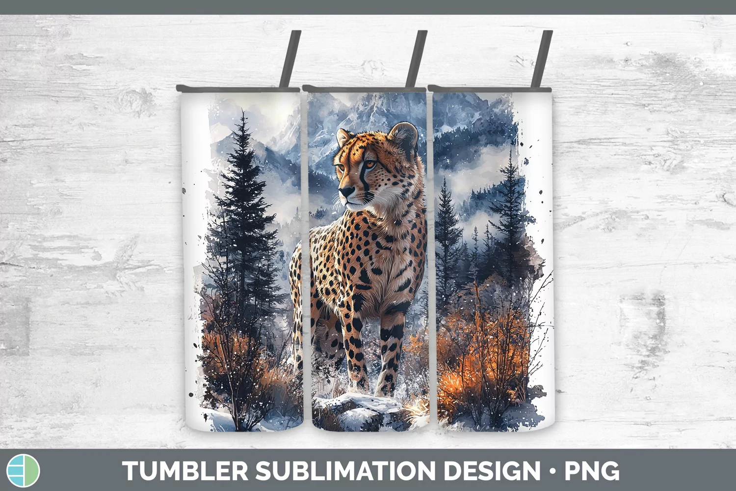 Winter Wild Cats Cheetah Tumbler Sublimation 20 oz Skinny Tu